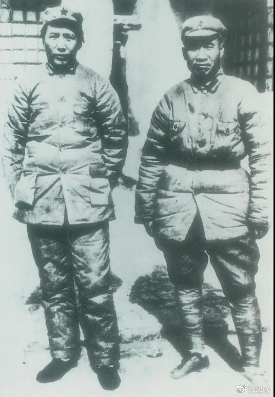 1937年7月7日,盧溝橋事變爆發(fā)。8日,中共中央通電全國,號(hào)召結(jié)成民族統(tǒng)一戰(zhàn)線抵抗日本侵略者。圖為1936年冬毛澤東和朱德在陜北。