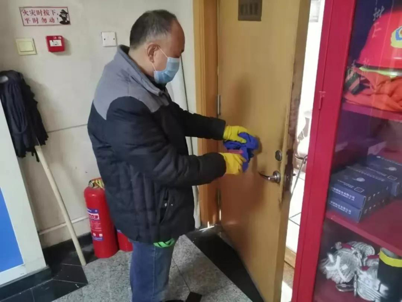 由于濟南分公司大樓為租賃式,人員來自四面八方,但作為值班管理人員,對每一個人員管控,每一個區域消毒都不能有一絲松懈,做好每一項工作,完善每一個程序,是義不容辭的責任,龐允朋是這么說也是這么做的……。