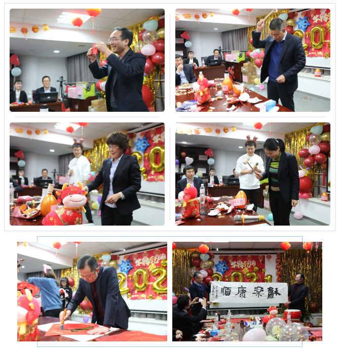 期間也穿插數輪抽獎與游戲環節,大家積極參與、熱情高漲,活動有序進行,展現了活潑有素的集體精神。聯歡會迎來一個又一個高潮,洋溢著歡樂祥和的節日氣氛?!端透<{吉迎新春》節目由公司領導現場揮墨,將一幅幅承載新春祝福的對聯送給大家,并祝愿大家在新的一年里“牛”轉乾坤、牛氣沖天!