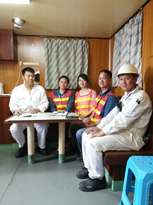 8月23日上午9點半,EII組織亞太分部的兩名工作人員登輪對“新懋發(fā)”進行了檢查。檢查中,該組織工作人員先后查驗了船舶國籍證書、FFA證書、轉(zhuǎn)載證書等有關(guān)證書,以及船舶大副收據(jù)、配載圖、轉(zhuǎn)載聲明等裝貨文件。接著,檢查人員對裝貨情況、魚貨中是否混有海豚等情況逐項進行查驗。最后,檢查人員到甲板卸貨區(qū)現(xiàn)場查驗了船載魚貨的實際情況、貨艙衛(wèi)生情況和卸貨操作過程等。在經(jīng)過一個半小時的詳細檢查后,EII組織工作人員表示,中魯海運公司旗下“新懋發(fā)”輪生產(chǎn)作業(yè)合法合規(guī)、沒有破壞生態(tài)環(huán)境的行為,貨物中沒有夾雜海豚等海洋保護動物。同時,“新懋發(fā)”輪全體人員嚴謹?shù)墓ぷ鲬B(tài)度和扎實的工作作風(fēng)給EII組織工作人員留下了深刻印象,檢查結(jié)束后,該組織工作人員主動要求和船上人員合影留念。