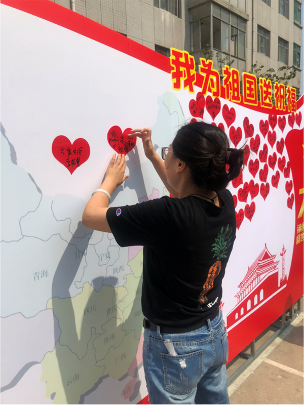 活動(dòng)現(xiàn)場,大家在“我為祖國送祝福”簽名墻上鄭重簽下自己的名字,并寫上“我愛你祖國”、“祝祖國生日快樂”、“祝福祖國繁榮富強(qiáng)”等對祖國的美好期盼。一句句樸實(shí)簡單的話語,承載著真摯的祝福,飽含著大家對祖國深深的眷戀。