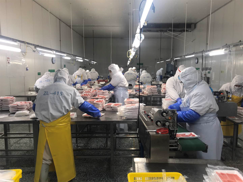 公司一手抓好疫情防控,一手抓緊復工復產,全力保訂單穩供應,力爭把疫情影響降至最低。2月22日,公司權屬企業中魯食品的第一批返崗員工,乘坐煙臺市政府暖心援企“返崗直通車”安全返崗,為生產線全線復工注入了有生力量。截至3月16日,公司通過“返崗直通車”接回省外員工近200人,后勤復工率100%,一線生產人員306人,數量超過去年同期水平。在前期復工率不足的情況下,由后勤人員組成的突擊隊連續奮戰半個月,完成了200萬美元的訂單,7個成品柜按期出廠。截至目前,公司加工貿易板塊共出口金槍魚產品592噸,總貨值達461萬美元。