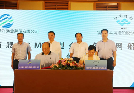 2021年8月11日,中魯遠洋兩艘76米大型金槍魚圍網船簽約儀式在青島舉行。 青島市海洋發展局副局長王曉訓,中魯遠洋公司黨委書記、董事長盧連興,董事、...