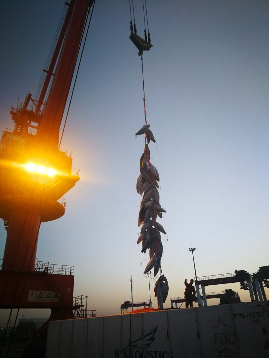 5月20日,滿載超低溫魚貨的運搬船順利停靠青島港,這是年內中魯海延公司接到的超低溫魚貨第四次卸貨任務。