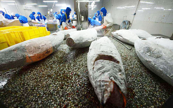 遠洋捕撈是我公司支柱產業,現有捕撈漁船共27艘,其中金槍魚圍網船9艘,超低溫金槍魚延繩釣船14艘,專業拖網船2艘,魷魚釣2艘。分布于印度洋公海,大西洋公海及近海等海域從事捕撈作業。主要捕撈品種有鰹魚、黃鰭金槍魚、大目金槍魚、墨魚、章魚、魷魚等。